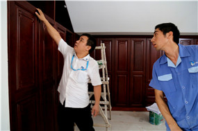左右手負(fù)責(zé)人在衣柜安裝現(xiàn)場(chǎng)進(jìn)行指導(dǎo)