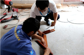 衣柜安裝現(xiàn)場(chǎng)師傅相互配合
